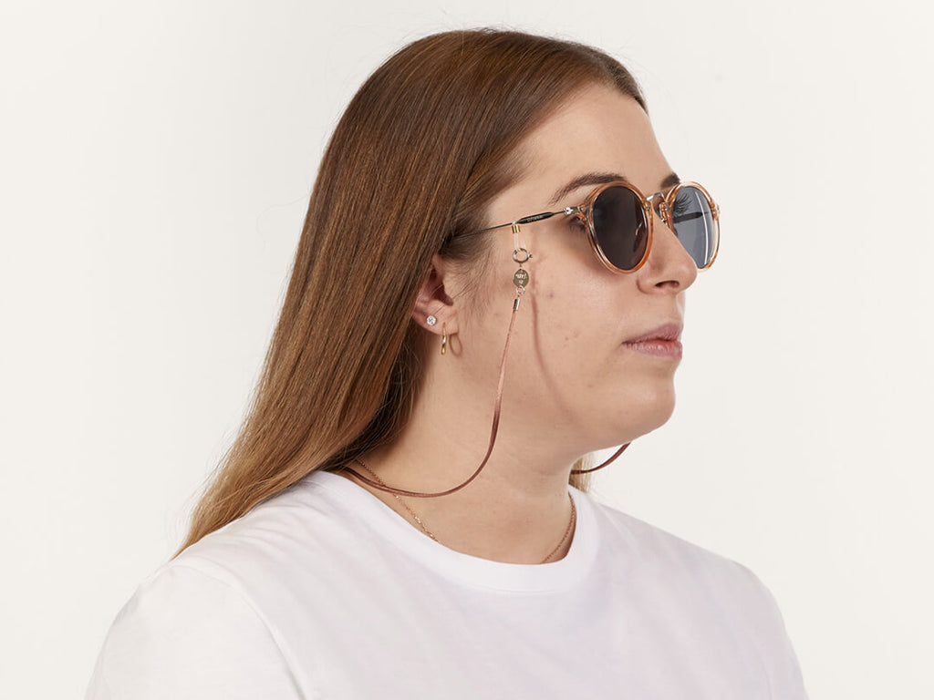 • Gancio occhiali trasparente e oro